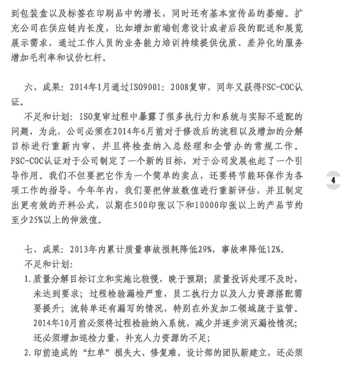2014年度管理评审报告即可持续发展战略总结和风险评估报告