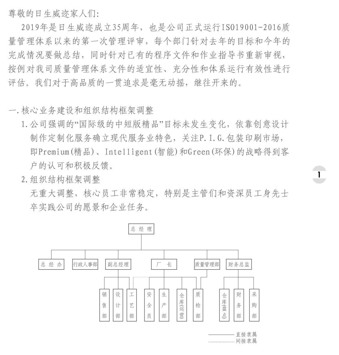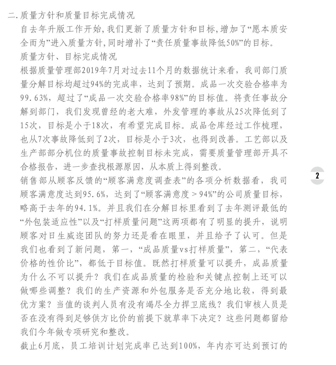 2019年度管理评审报告即可持续发展战略总结和风险评估报告