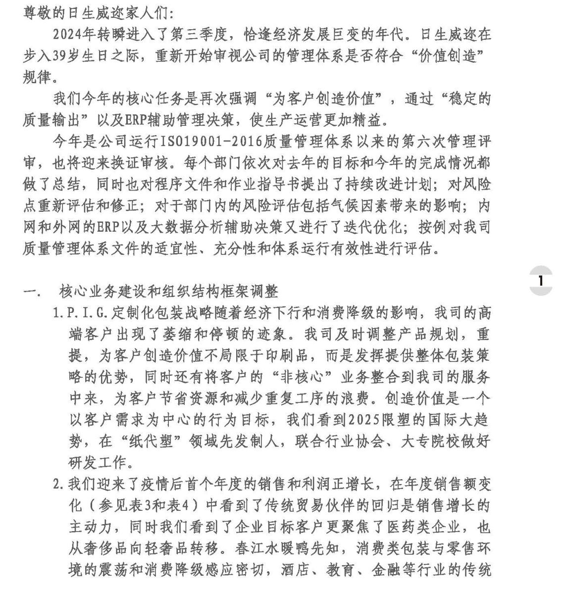 2024年度管理评审报告即可持续发展战略总结和风险评估报告